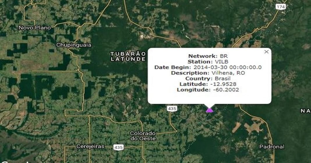 A Rede Sismográfica Brasileira (RSBR) registrou um pequeno tremor de terra em Chupinguaia (RO), no Cone Sul do estado, durante a quinta-feira (4). A informação foi divulgada através de um boletim, emitido pela estação da RSBR em Vilhena (RO).