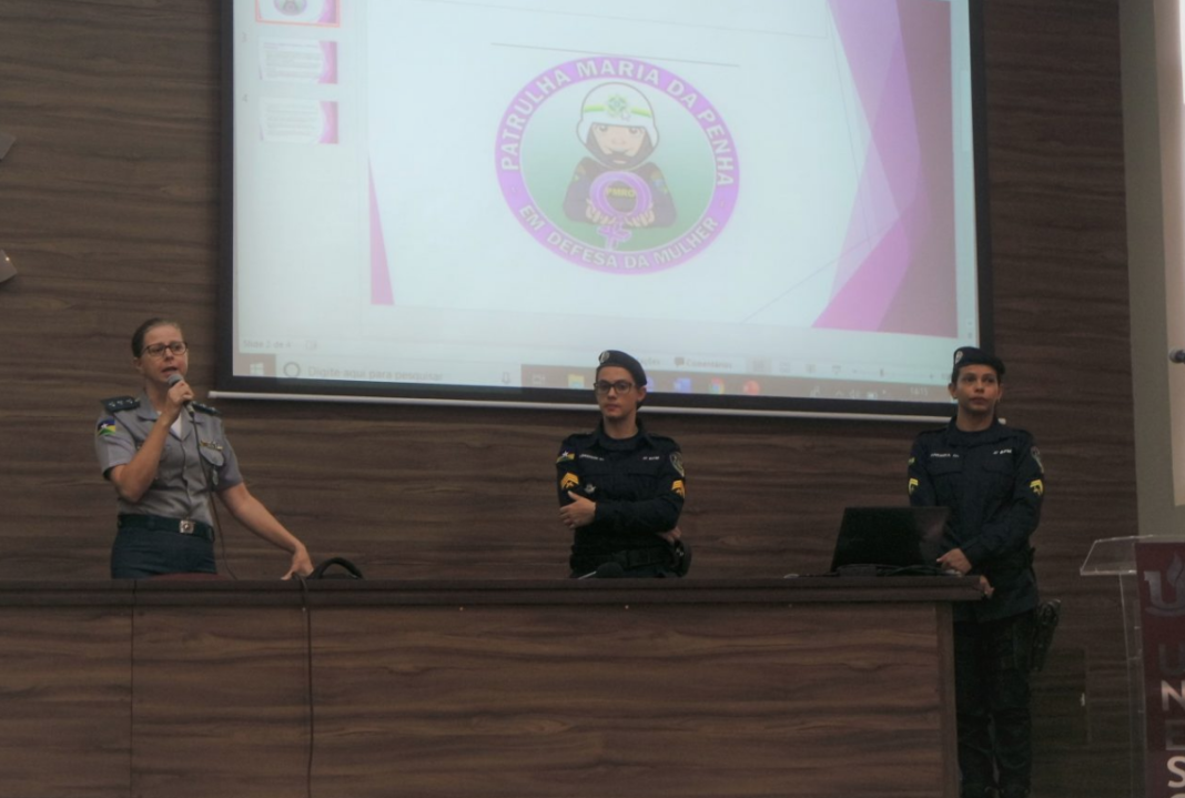 Celebrando este primeiro ano de atuação em Cacoal, policiais que integram a Patrulha Maria da Penha apresentaram aos acadêmicos de uma faculdade privada em Cacoal, todo o trabalho e responsabilidade da Polícia Militar para garantir o sucesso deste projeto.