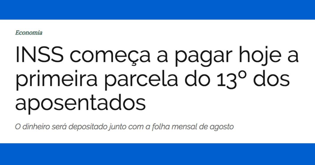 “É o cronograma normal de pagamento. Você recebe sua aposentadoria, ou sua pensão, acrescido dos 50% [do décimo terceiro]”, disse o secretário especial de Previdência e Trabalho do Ministério da Economia, Rogério Marinho, ao anunciar a medida no último dia 5 de agosto, em entrevista à imprensa.