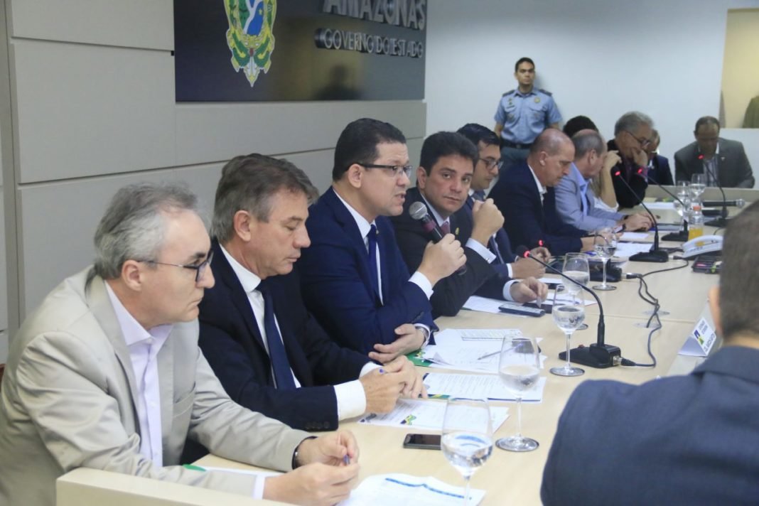 Além dos ministros da Casa Civil, Onyx Lorenzoni; da Defesa, general Fernando Azevedo; e do Meio Ambiente, Ricardo Sales; participaram do alinhamento de ideias os governadores de Rondônia, coronel Marcos Rocha; do Acre, Gladson Cameli; de Roraima, Antônio Denário; e do Amazonas, Wilson Lima, anfitrião do evento.