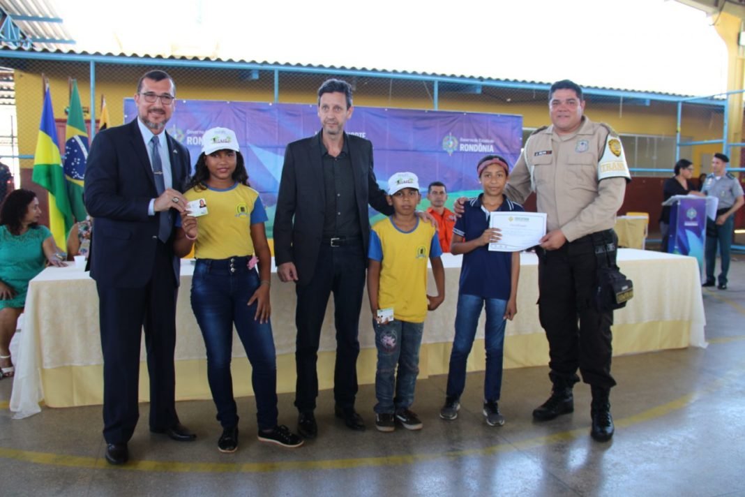 O projeto de Educação para o Trânsito (Educatran) desenvolvido pelo Governo de Rondônia, por meio da Secretaria de Estado da Segurança Pública, Defesa e Cidadania (Sesdec) e em parceria com o Departamento Estadual de Trânsito (Detran), que teve em agosto deste ano na Escola Estadual de Ensino Fundamental e Médio Jorge Teixeira de Oliveira, no bairro Ulisses Guimarães, zona Leste de Porto Velho, já está colhendo os frutos do trabalho com a formação de 182 alunos, que receberam na manhã desta segunda-feira (25) o certificado e a carteira de Agente de Trânsito Mirim.