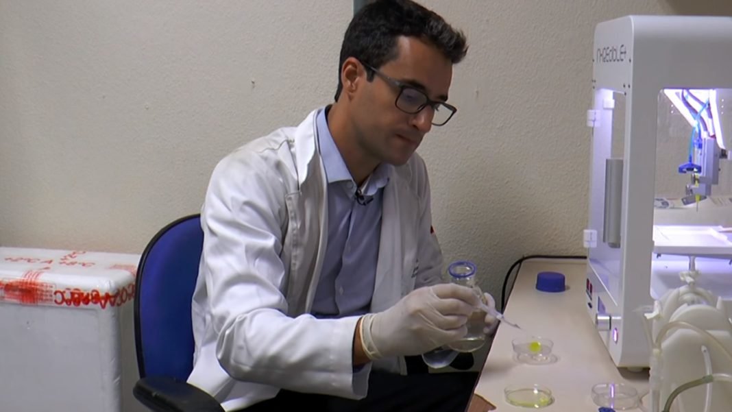 “A deposição dos esferoides durante a impressão ocorre em três eixos, algo necessário para o material ganhar volume e o tecido ter sustentação. Depois é feita uma reação de reticulação para que a impressão – que tem a consistência de um gel – enrijeça a ponto de ser manipulada ou até mesmo suturada”, disse Goulart.