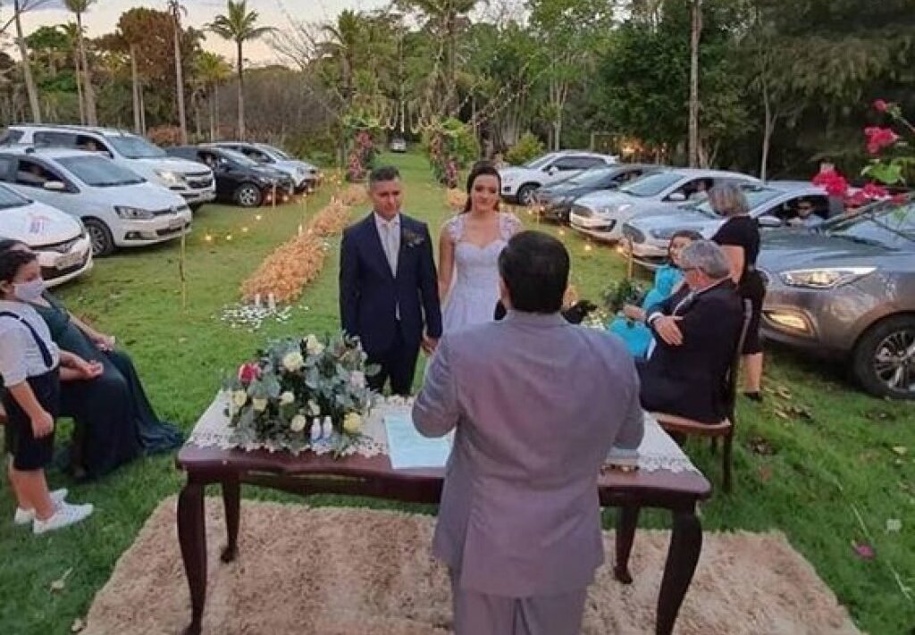 Com a pandemia do novo coronavírus, muitas pessoas, para evitar qualquer tipo de aglomeração, precisaram adiar eventos, viagens e festas. Mas alguns, ousando na criatividade, e por amor, não abandonaram as comemorações, sem deixar os cuidados com a saúde de lado. Camila Manvailer, de 29 anos, e Robson Scheidegger de Castro, de 37, decidiram inovar e se casaram no último fim de semana com uma cerimônia no sistema drive-in.