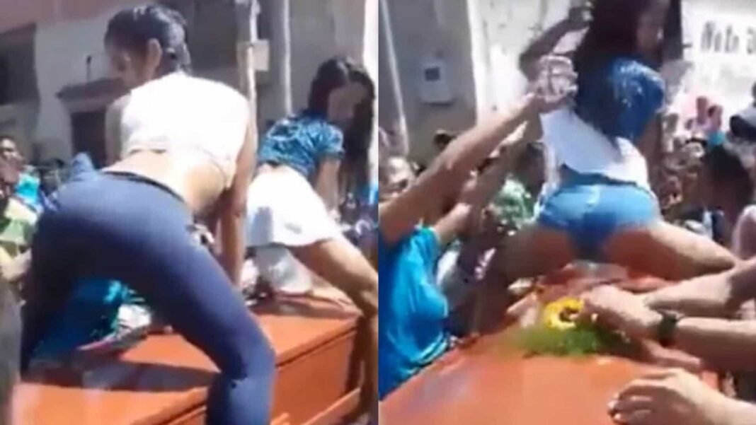 Em dado momento do funeral, uma mulher sobe no caixão e começa a dançar e rebolar ao som do ritmo regueton. Além disso, ela aproveitou que a urna estava semiaberta pra beijar o falecido.