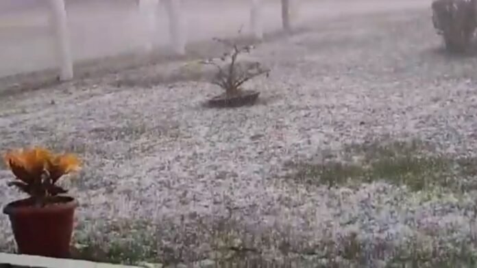 Imagens e vídeos do temporal circularam nas redes sociais. Além do granizo, há relatos de queda de árvores e destelhamento de casas.