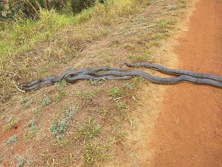 O estudante de medicina veterinária Antônio Stábile dos Santos registrou uma cobra sucuri fêmea atravessando uma estrada em Ituverava (SP). A serpente estava sendo perseguida por pelo menos cinco machos que disputavam o “cargo” de procriador. As informações são do G1.