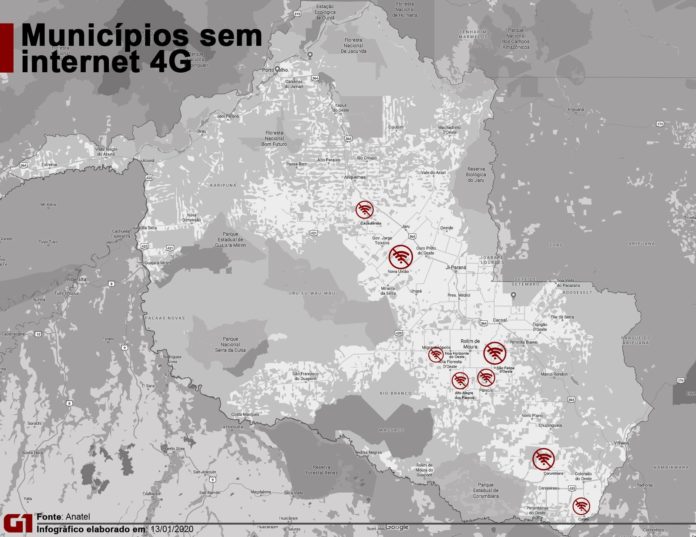 Até o momento, conforme a Anatel, essas oito cidades recebem apenas a cobertura de internet móvel 3G. Já as outras 44 cidades são cobertas pela rede 4G.