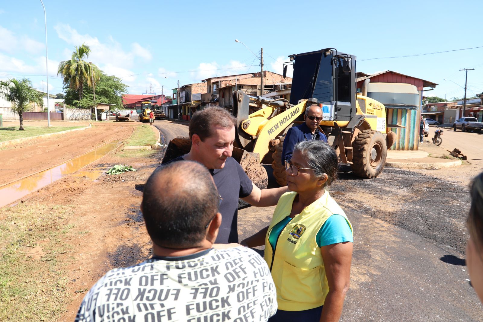 O prefeito Hildon Chaves esteve na manhã desta quarta-feira (15) vistoriando as obras de pavimentação do Mercado do Peixe, localizado no Porto Hidroviário do Cai n’Água no bairro Triângulo e também na estrada de Santo Antônio.