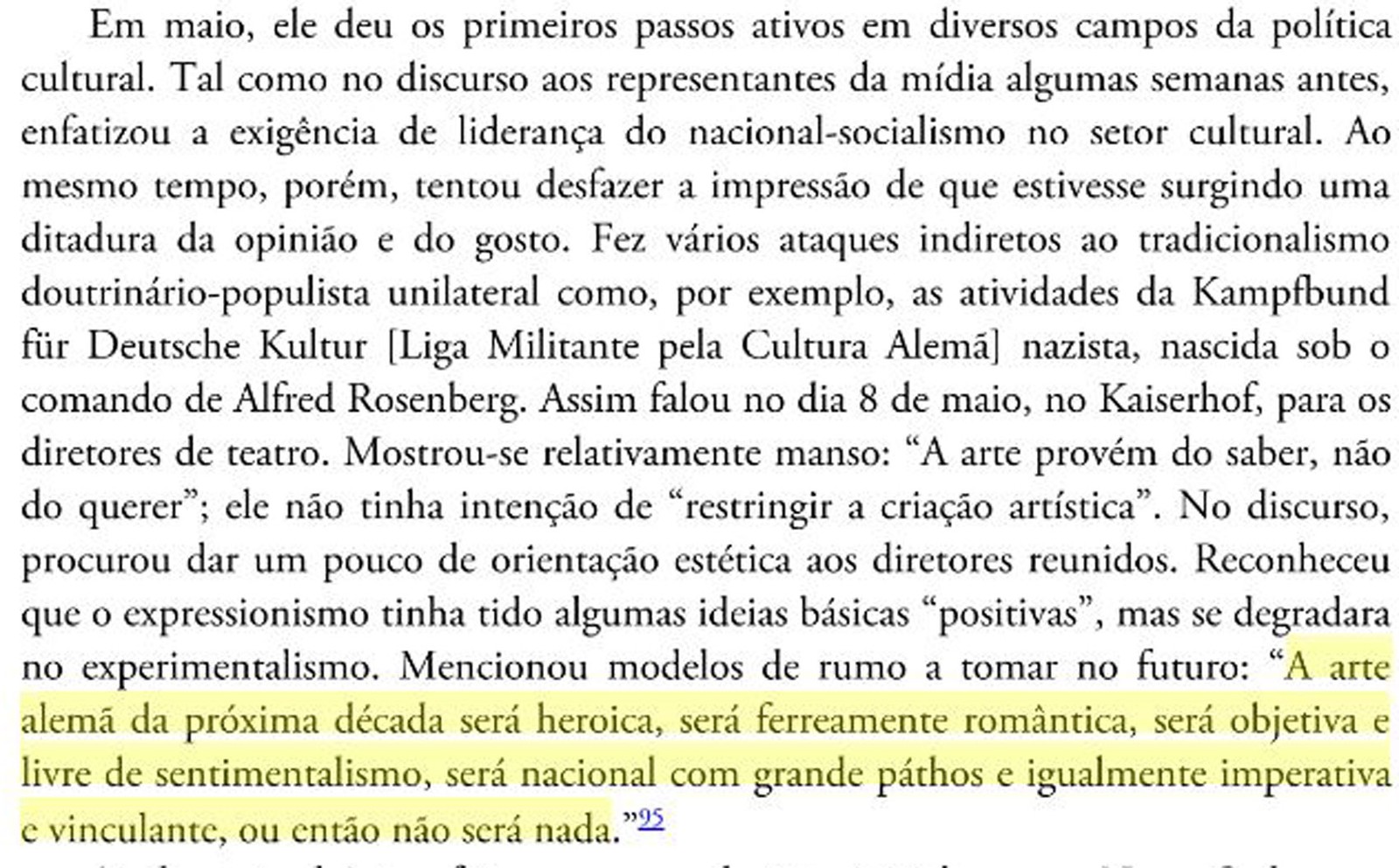 “A arte alemã da próxima década será heroica, será ferreamente romântica, será objetiva e livre de sentimentalismo, será nacional com grande páthos e igualmente imperativa e vinculante, ou então não será nada.”