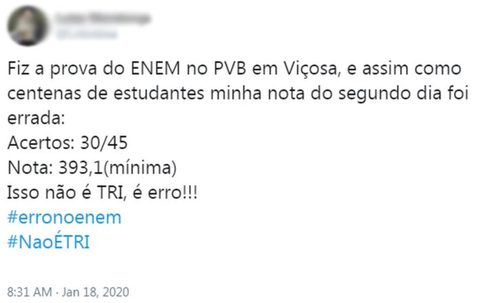 “A equipe do Inep continua trabalhando na apuração das inconsistências nas notas individuais do Enem 2019. Reafirmo: nenhum candidato será prejudicado! A abertura do Sisu será na terça, dia 21” – Abraham Weintraub, ministro da Educação.