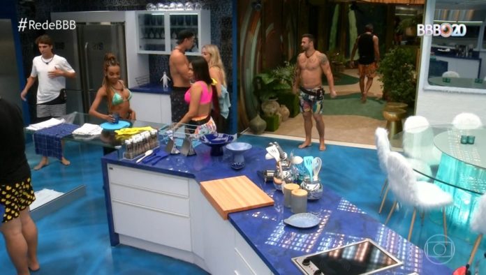 Na estreia do BBB20, participantes descobrem que a casa está dividida em grupos por um muro — Foto: Reprodução/TV Globo