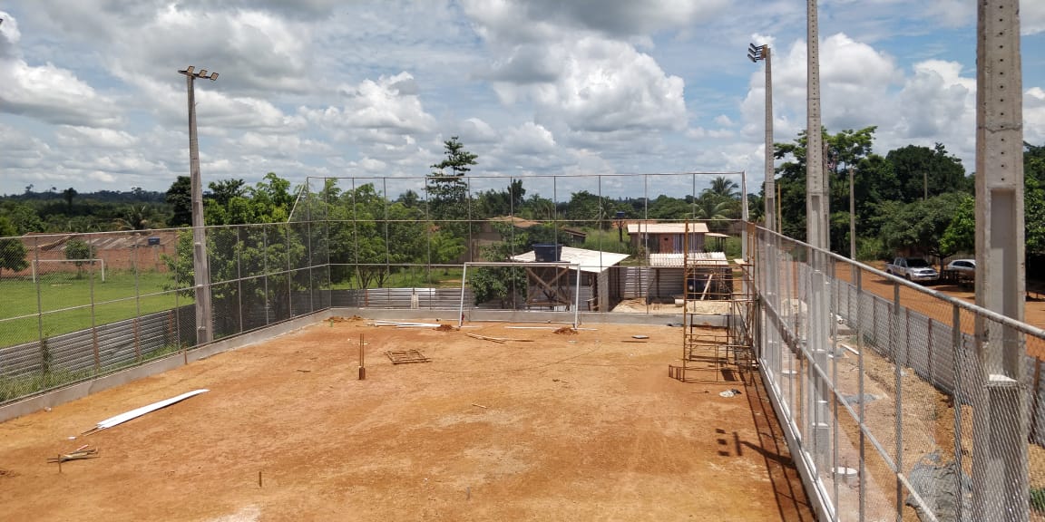 Já em União Bandeirantes a obra avançou quase 45% e inclui o campo de grama sintética com 742,39m², alambrado, rede de cobertura, traves, iluminação do campo composto de 6 postes, sendo 18 luminárias de led 400w, calçada com acessibilidade e bancos de concreto.