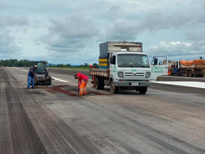 Nesta semana, o Aeroporto de Cacoal “Capital do Café” passou por um serviço de manutenção emergencial da pista de pouso e decolagem. Os reparos foram executados por uma equipe da 4ª Residência Regional do DER no município. De acordo com o residente titular, Emiliano Mancuso de Almeida, foi montado um cronograma específico para a realização dos serviços. “Devido à necessidade de não interrupção de tráfego, deslocamos pessoal e maquinário para que, em quatro horas de trabalho, os reparos fossem feitos com agilidade, qualidade e eficiência”.