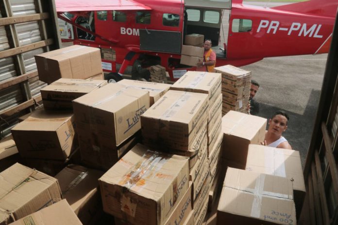 A aeronave Grand Caravan EX, do Grupamento de Operações Aéreas (GOA) do Corpo de Bombeiros de Rondônia transportou de Manaus para Porto Velho um total de 35 mil máscaras de proteção. Outras 25 mil unidades do equipamento de proteção individual chegaram momentos depois, transportadas pela aeronave da Base Aérea.