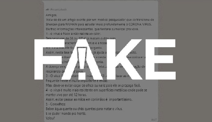 O texto contém diversas informações erradas sobre o coronavírus (COVID-19) e sobre como se proteger da doença.