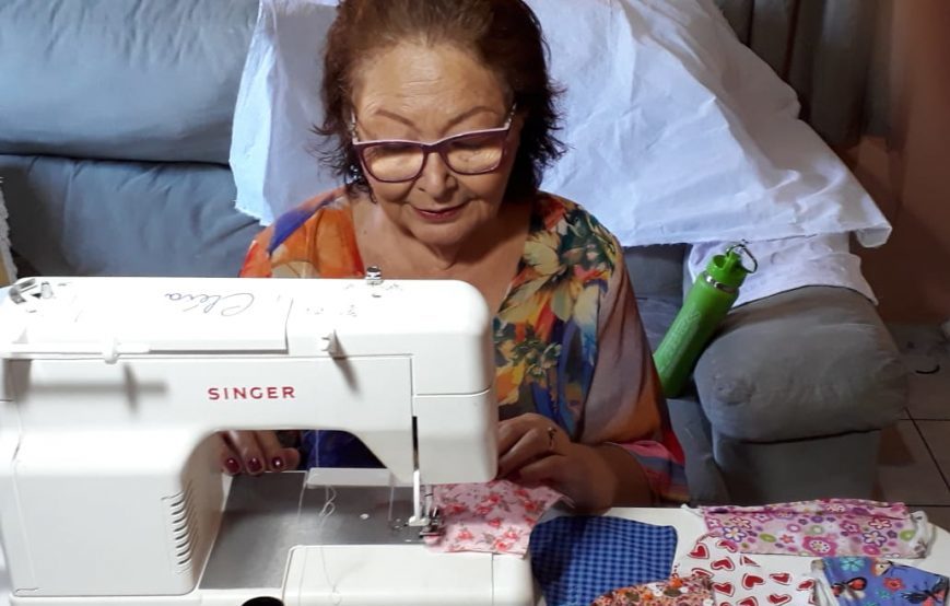 Às 10h da manhã desta terça-feira (7), Maria Cleia Maria Moreira Montes, 68 anos,  quatro filhos, moradora no Bairro Aponiã, em Porto Velho, está firme na máquina de costura. Ela fabrica máscaras artesanais de proteção, usando tricoline estampado.
