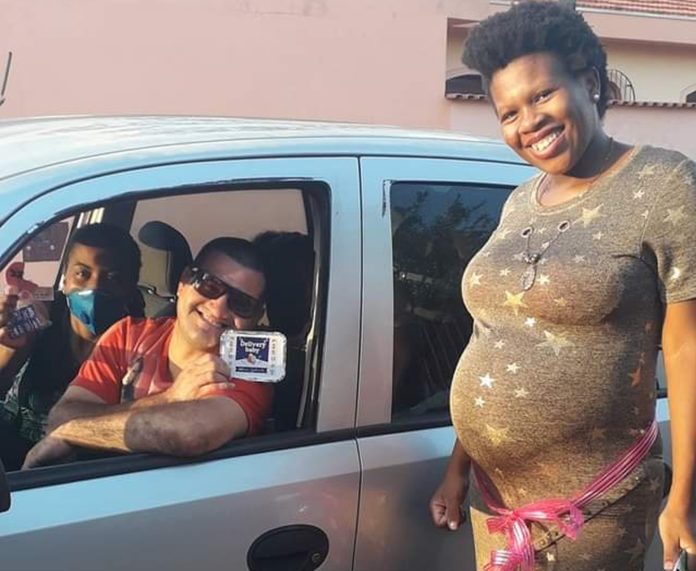 Uma grávida de Agudos (SP) realizou um chá de fraldas diferente durante o isolamento social, recomendado por causa da pandemia de coronavírus, para presentear a nova integrante da família.