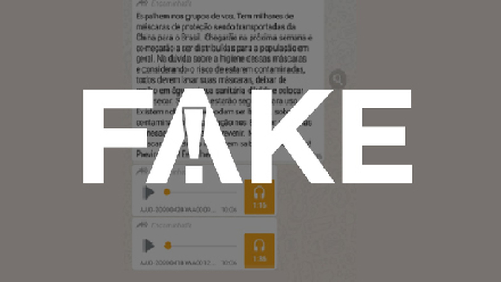 As mensagens têm sido compartilhadas em formato de áudio e texto. Uma diz que “na dúvida sobre a higiene dessas máscaras, e considerando o risco de estarem contaminadas, todos devem lavar suas máscaras, deixar de molho em água e água sanitária diluída e colocar para secar. Só aí elas estarão seguras para uso”. Diz ainda que “existem notícias, que podem ser boatos, sobre a contaminação de população nos Estados Unidos por máscaras chinesas”.