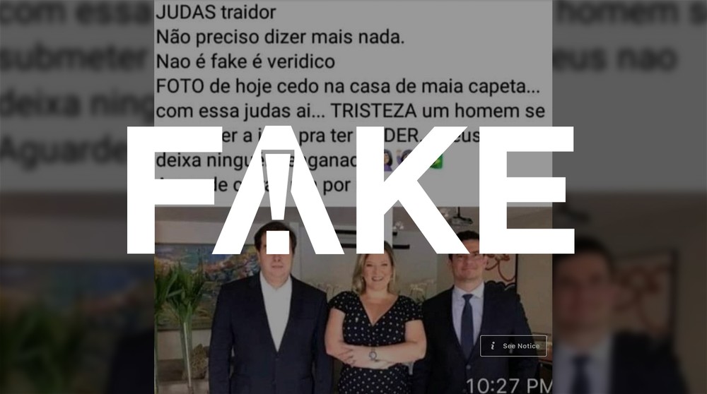 A foto foi publicada originalmente em um tuíte de Joice Hasselmann. Ela escreveu na época que o encontro selava um “compromisso de celeridade do pacote anticrime”. A deputada se referia aos projetos de lei apoiados por Moro que tramitavam na Câmara dos Deputados.