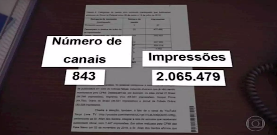“Em oitiva realizada pela CPMI das Fake News em 05 de novembro de 2019, o Sr. Allan dos Santos afirmou que seus veículos de comunicação, incluindo o canal de YouTube Terça Livre TV, ‘não recebem dinheiro da Secom’. Contudo, os dados disponibilizados pela Secretaria demonstram que o canal Terça Livre TV recebeu verbas de publicidade do Governo Federal, por meio do programa Google Adsense”, diz o relatório.