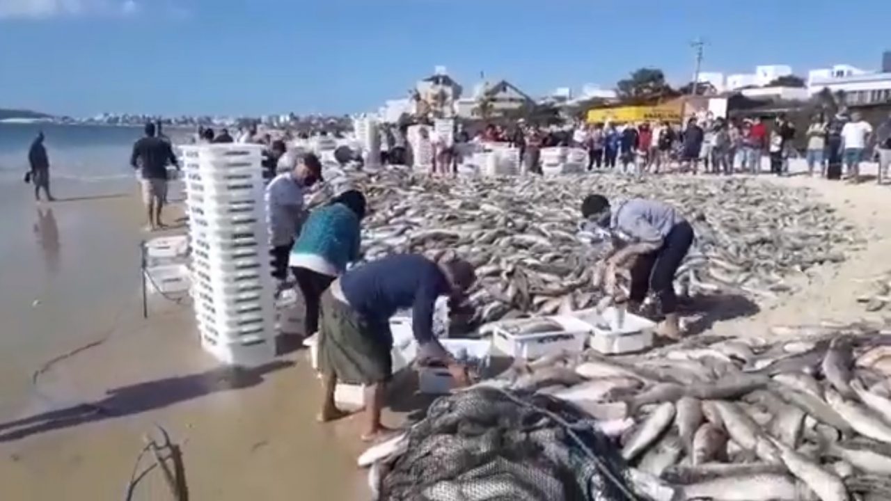 Imagens da praia dos Ingleses, em Florianópolis, repleta de tainhas impressionou os internautas na manhã de quarta-feira (3). De acordo com os organizadores da pesca, cerca de 40 mil tainhas foram retiradas do mar em apenas um dia. No sábado (30), outros 27 mil peixes encheram as redes, na mesma praia.