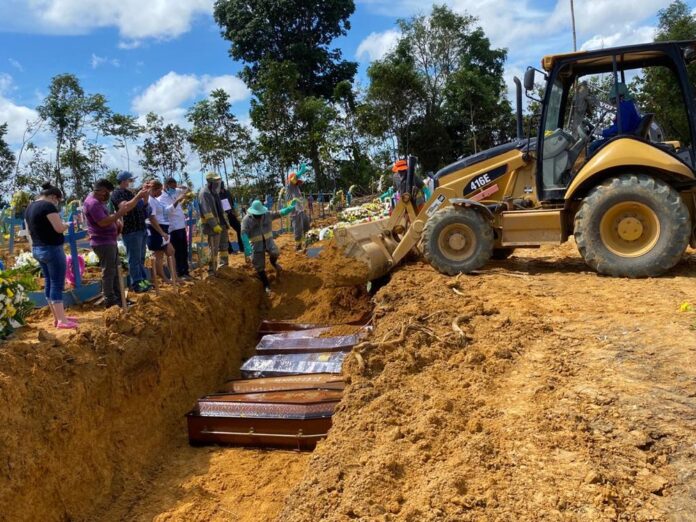 Enterros na capital amazonense ficaram 108% acima da média histórica por conta dos casos de Covid-19. Corpos são enterrados em valas comuns.