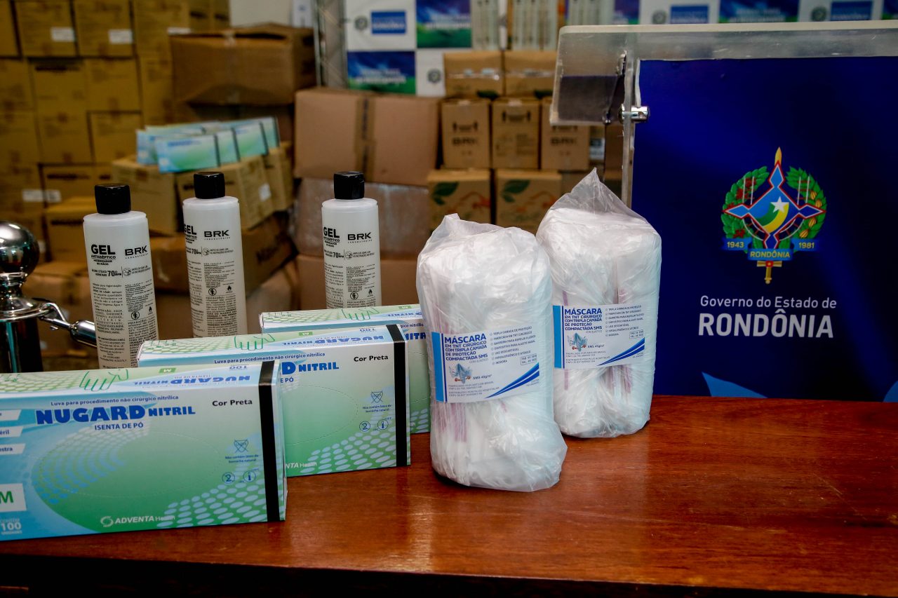 Para garantir a capacidade operacional das forças de segurança públicas do estado de Rondônia, os itens estão divididos entre caixas de luvas descartáveis, máscaras cirúrgicas, unidades de álcool em gel de 500 ml, aventais descartáveis e óculos de proteção.