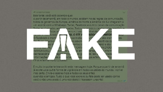 É #FAKE que STF autorizou monitoramento do WhatsApp de todos os brasileiros