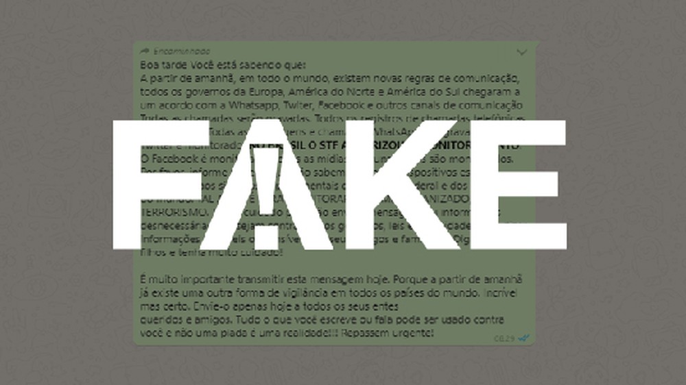 Circula pelas redes sociais uma mensagem na qual o STF dá autorização judicial para o monitoramento do WhatsApp de todos os brasileiros. O texto faz uma referência direta no título ao aplicativo de mensagens, mas também inclui no corpo do texto o Twitter, o Facebook e outros canais de comunicação. É #FAKE.