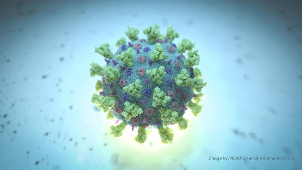 Foto microscópica mostra célula humana sendo infectada pelo Sars Cov-2, o novo coronavírus — Foto: NIAID via Nasa