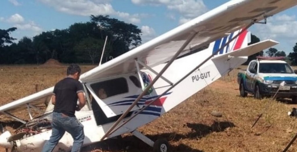 Segundo os policiais a aeronave era ocupada por dois tripulantes, que não se feriram.