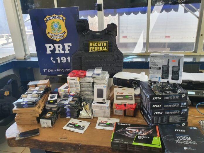 Entre os itens contrabandeados no caminhão estavam componentes internos para computadores (memórias, placas de vídeo, Hard Disk, processadores), teclados, pendrives, leitor de imagem, aparelho GPS e rádios transmissores.