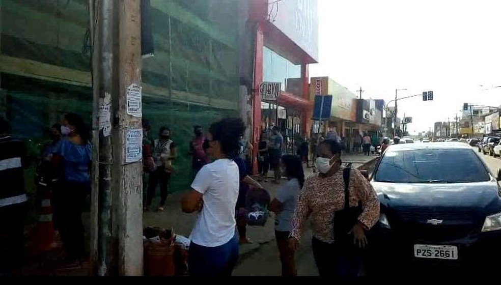 Aglomeração na frente da Caixa, Zona Sul de Porto Velho — Foto: João Antônia/CBN Porto Velho