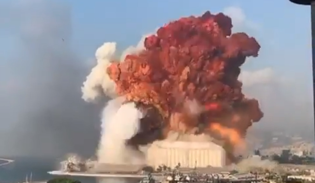 Uma explosão aconteceu na região portuária de Beirute, no Líbano, nesta terça-feira (4). Imagens mostram uma grande coluna de fumaça avermelhada sobre a área.