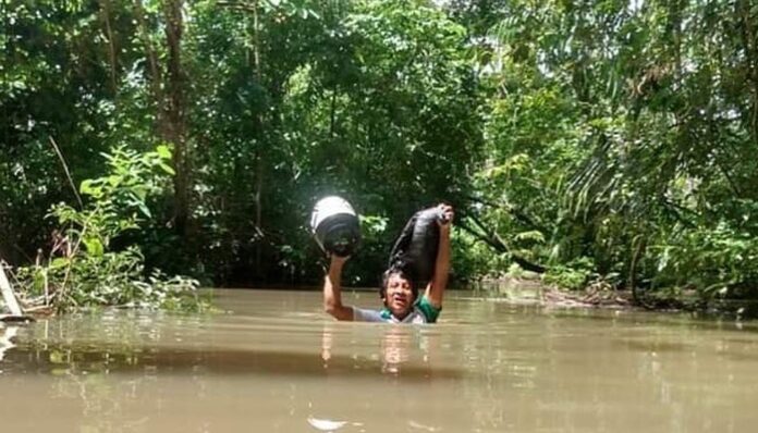 Professor percorre 30 Km e atravessa igarapé com água no pescoço para imprimir atividades de alunos indígenas em RR