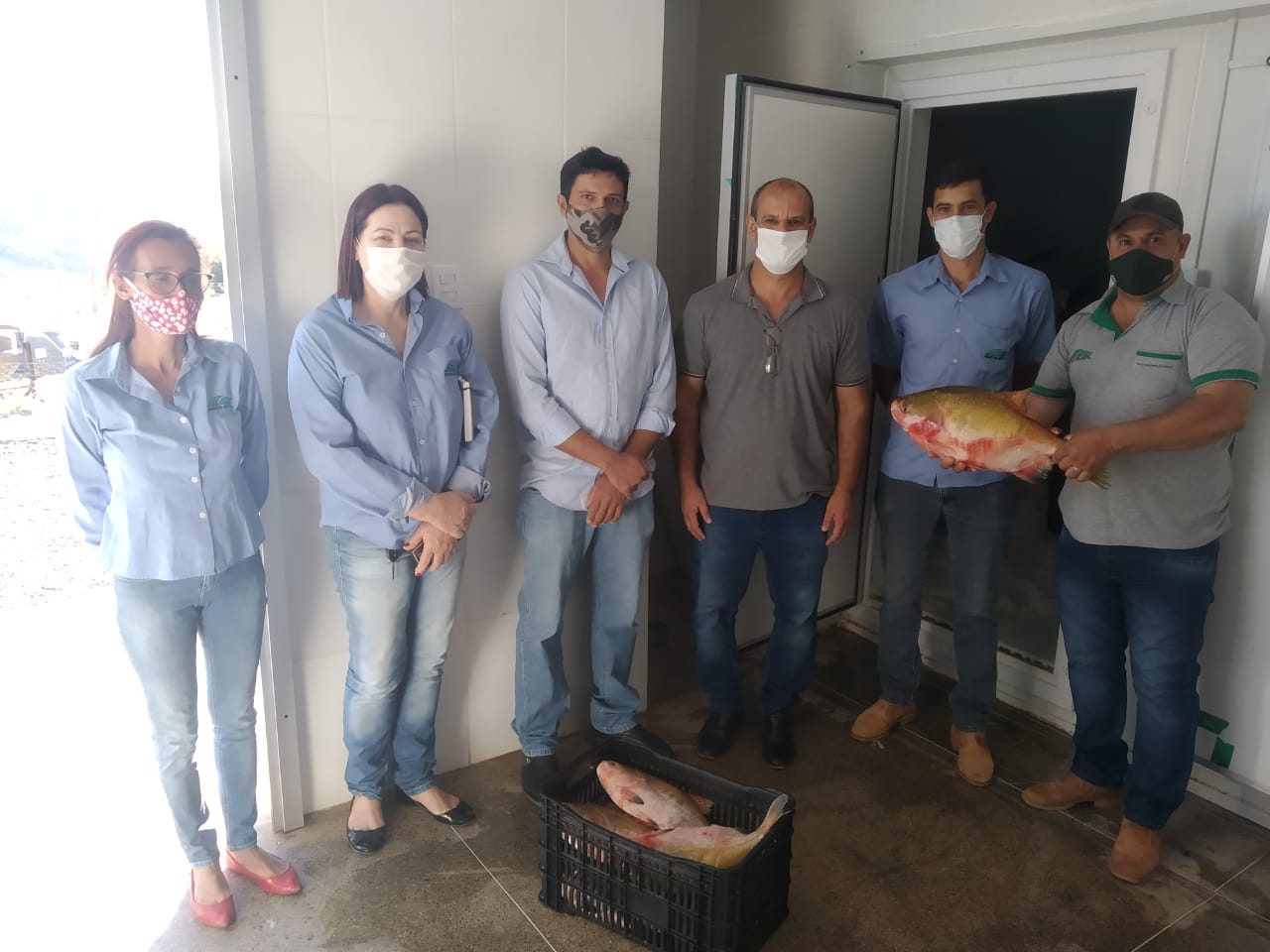 O secretário-executivo na Regional em Rolim de Moura, Adeilso da Silva, acompanhado do gerente regional da Emater, Alexandre Venturoso, da supervisora regional da Emater, Albertina Marangoni Botega, e o gerente local do escritório de Novo Horizonte D’Oeste, José Aparecido, visitaram a agroindústria Serra Dourada Pescados.