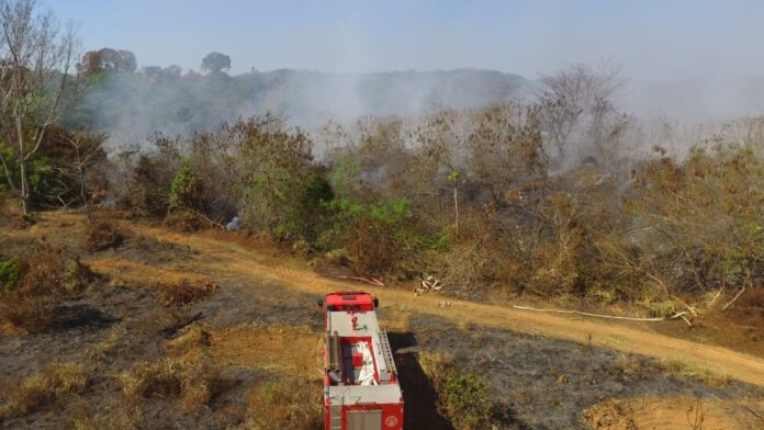 Segundo a corporação, há fogo na superfície e também na parte subterrânea do antigo lixão, por isso, existe uma dificuldade no combate das chamas. Os bombeiros estão no local há uma semana.