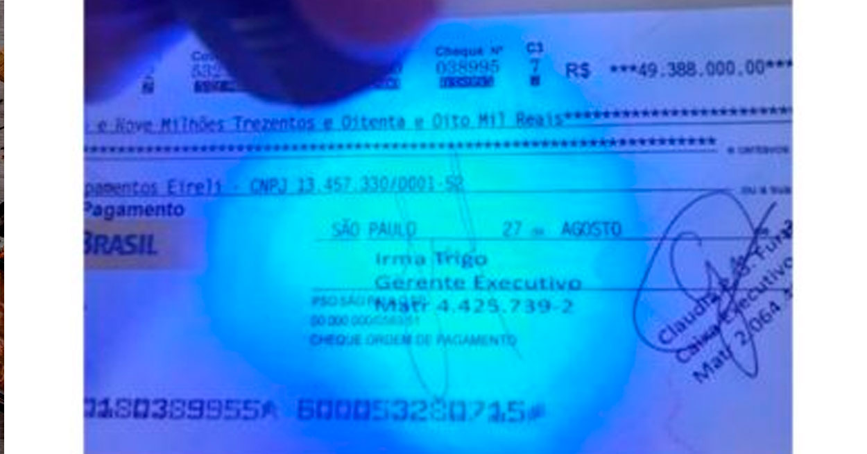 Luz ultravioleta CONFIRMOU FALSIFICAÇÃO de CHEQUE de R$ 49,3 Milhões