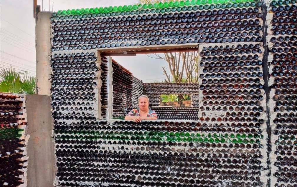 Educadora constrói casa com garrafas de vidro: ‘Além de tirar do meio ambiente, vou ter meu cantinho’