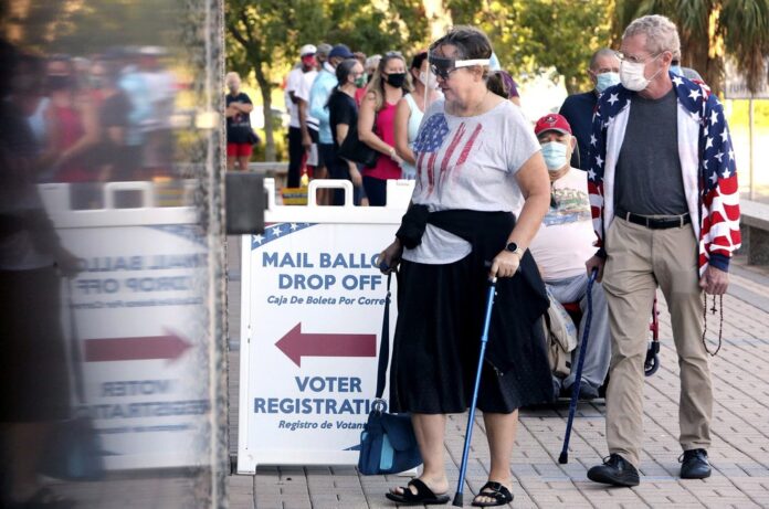 Os democratas representam 55% do 10,9 milhões de votos antecipados depositados em estados que divulgam dados de registro partidário; e os republicanos respondem por 24%.