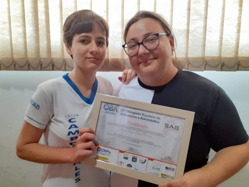 “Meu interesse em física se deu no Ensino Médio, pois tenho mais facilidade na área de exatas, porém, vai muito além. Quando era criança, por volta dos onze anos, assisti a um programa de televisão chamado ‘Cosmos’ [baseado no livro do físico Carl Sagan], e me vi muito interessada por cosmologia. Ao cursar o Ensino Médio, entendi que a física está por trás de todo o universo representado naquele programa que assisti na infância. Também meus escritores favoritos são o norte americano Carl Sagan [físico, astrônomo, cientista e escritor que influenciou a nova geração com suas obras] e o alemão Friedrich Nietzsche [filósofo, filólogo e crítico cultural]. Então, decidi que queria atuar amplamente como física, pesquisadora e cosmóloga”, explica a estudante.