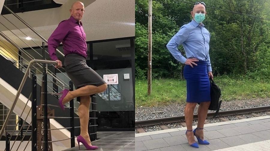O americano que mora na Alemanha contou ao site Bored Panda que começou a usar salto alto com saia há cinco anos. Somente no Instagram, onde ele tem mais de 60 mil seguidores, Mark publica fotos de seus looks com as mais diversas combinações que faz entre as saias e os sapatos de salto alto.