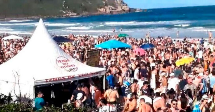 Aglomerações na Praia do Rosa, em Imbituba, têm sido comuns durante a pandemia de covid-19