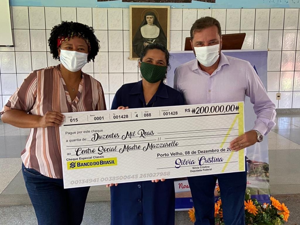 O Centro Social Madre Mazzarello – CESMMAZZA, entidade mantida pelas Irmãs Salesianas há 20 anos, está localizado na zona leste de Porto Velho e atende crianças e adolescentes com atividades formativas, artísticas, culturais e de valores éticos e cristãos com sua filosofia básica na educação cristã da criança, do adolescente e do jovem. Acompanhada do prefeito de Porto Velho, Hildon Chaves, a deputada Sílvia Cristina realizou a entrega do cheque simbólico e anunciou que o dinheiro já está disponível na conta da instituição.