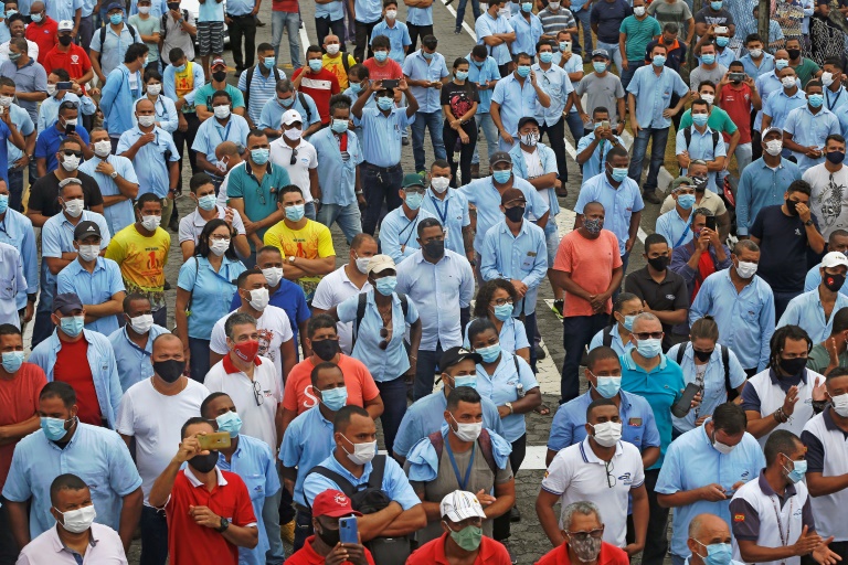 Desde o início da manhã, cerca de 3.000 trabalhadores, com máscara de proteção contra o coronavírus, se reuniram em frente à fábrica de Camaçari, no estado da Bahia (nordeste), e cerca de 500 em frente a de Taubaté (interior de São Paulo) – as duas que fecharão imediatamente, constataram fotógrafos da AFP.