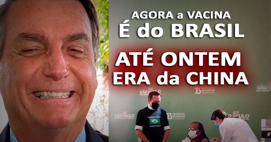 O presidente Jair Bolsonaro AFIRMA QUE A VACINA É DO BRASIL e não de um governador de estado. A fala faz menção a CoronaVac, desenvolvida em parceria entre o Butantan e a Sinovac, laboratório chinês.