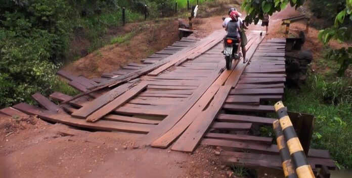 Moradores da zona rural de Rolim de Moura – RO, denunciam a condição precária de uma ponte na linha 180, km 05, sul. Eles contaram que no dia 18 de novembro de 2020, devido a situação precária um morador acabou se acidentando, as tábuas da ponte apodreceu, ele caiu dentro do rio com motocicleta e tudo, por sorte não morreu.