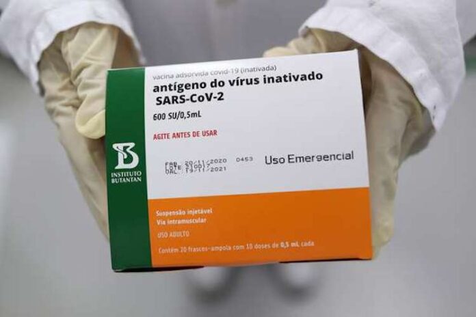 A CoronaVac foi desenvolvida pelo laboratório chinês Sinovac e está sendo envasada pelo Butantan.
