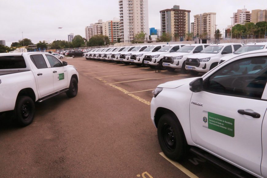 O Governo de Rondônia entregou nesta terça-feira (25) 20 novos veículos do tipo caminhonete para a Secretaria de Desenvolvimento Ambiental (Sedam), Corpo de Bombeiros Militar (CBM) e Polícia Civil (PC), para reforçar ações de prevenção e fiscalização contra desmatamentos e incêndios florestais em todo o Estado. A entrega foi feita pelo governador Marcos Rocha no estacionamento Pirarucu do Palácio Rio Madeira em Porto Velho, cumprindo metas do Plano Estratégico para o eixo ambiental.