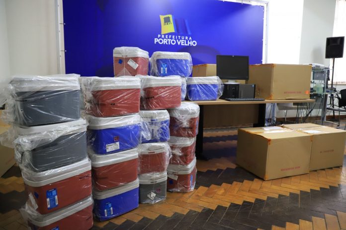 A Prefeitura de Porto Velho recebeu um apoio na campanha de vacinação contra a Covid-19. A empresa Energisa doou, na quinta-feira (19), 27 caixas térmicas de 12 litros e 20 computadores. Os equipamentos foram entregues ao prefeito Hildon Chaves no Prédio do Relógio, sede do Executivo Municipal.